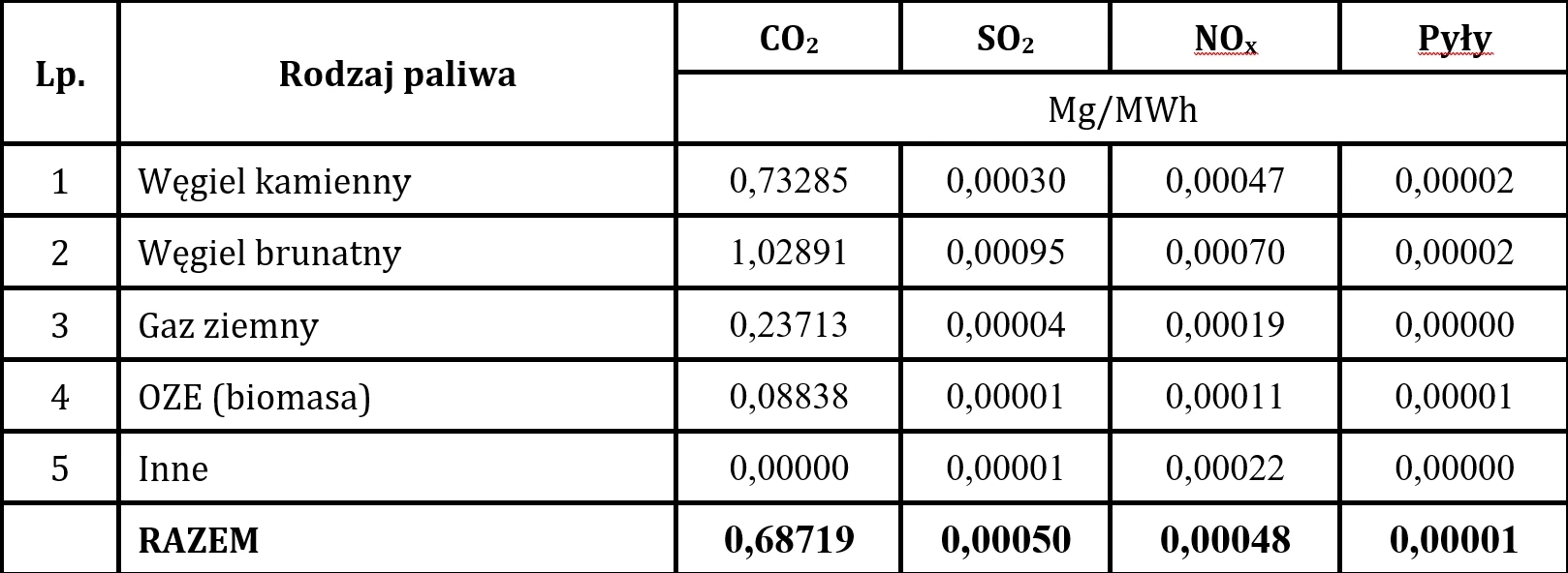 2) Dane o wielkościach emisji zanieczyszczeń w odniesieniu do wytworzenia energii elektrycznej zakupionej w 2024 r. na giełdach energii elektrycznej oraz na rynku bilansującym opracowane zostały na podstawie danych Agencji Rynku Energii SA - EMITOR 2024 Emisja Zanieczyszczeń Środowiska w Elektrowniach i Elektrociepłowniach Zawodowych, Warszawa, Wrzesień 2025.