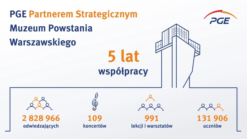 PGE jest partnerem strategicznym Muzeum Powstania Warszawskiego od 2016 roku. W tym czasie Muzeum odwiedziło 3 miliony gości, a pod patronatem PGE odbyło się ponad 100 koncertów oraz tysiąc warsztatów i lekcji dla ponad 130 tysięcy uczniów.